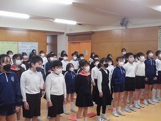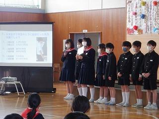 卒業式に在校生代表として参加する5年生が、3月6日(月)に学年集会を行っていました。卒業式は、6年生にとって学校にとって最も大事な式ですが、5年生にとっても学校のリーダーを引き継ぐ節目の式となります。