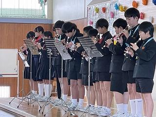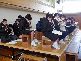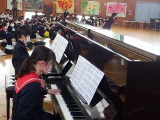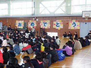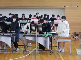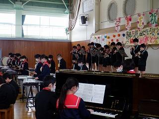 2月14日(火)6年生が、体育館で卒業を祝う会で披露する「ミックスナッツ」の合奏練習をしていました。1組2組合同で、下級生に感謝の気持ちが伝わるようにと、気持ちとリズムを合わせて取り組んでいました。前半の部と後半の部の2回披露するので、どちらの部でも素敵な音色を聞かせてもらうのを楽しみにしています。