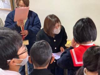 お話会の後で、全校児童を代表して4年生児童が感謝のメッセージを渡しました。どのカードからも子ども達の感謝の気持ちが伝わり、ボランティアの皆様にも喜んでもらえました。気持ちが伝わり嬉しいですね。