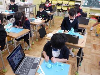 立体が上手くできあがり、嬉しそうに見せてくれました。楽しく学んでいる雰囲気が、子ども達の笑顔から伝わってきます。