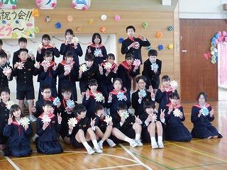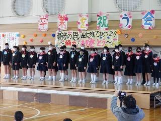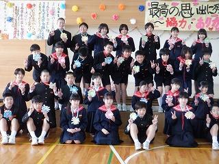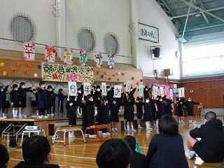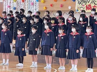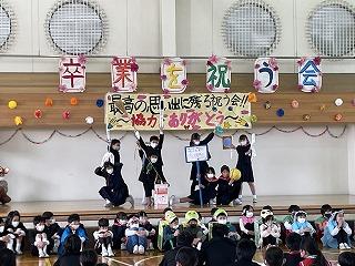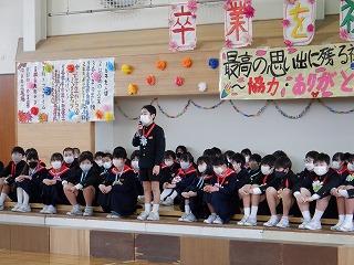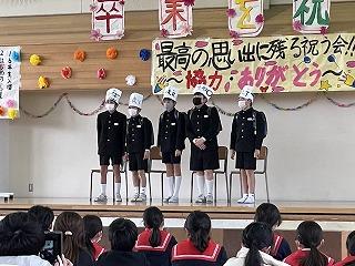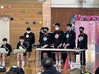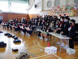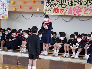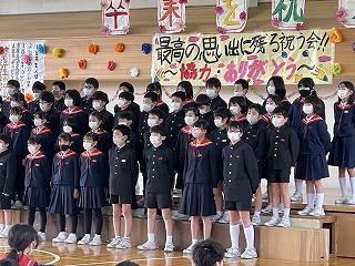 最後に6年生から在校生に向けて感謝の言葉があり、6年生退場では、在校生の気な拍手のもと、笑顔で6年生が退場しました。今年のスローガン通り、中条っ子みんなの「最高の思い出に残る祝う会」になりました。