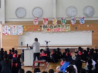 学校長からは、全児童が今年度の課程を修了し、一人一人が頑張り身に付けた力と学年として成長できた姿について話があり、進級できることが伝えられました。聞いている子ども達は、1年の成長を感じさせる立派な姿で話を聞いていました。
