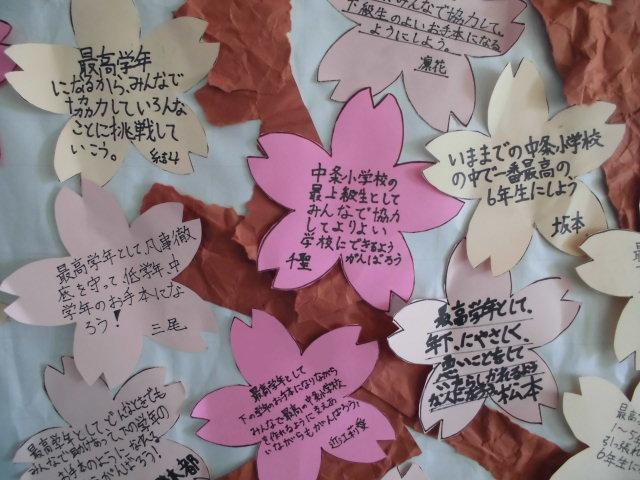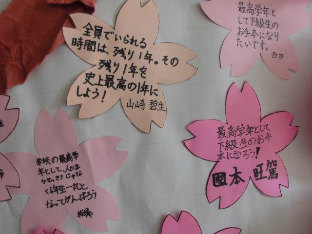 この桜の花びらに書かれた頼もしい言葉を有言実行できるよう、5年生で一丸となって残りの学校生活を送りたいですね!