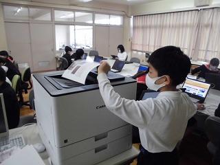 総合の学習で「中条小の歴史」について調べている3年生。3月13日(月)は、パソコンサポーターが来校する日なので、記事を集め、調べたことを整理する学習に取り組んでいました。子ども達は、中条小学校の伝統についてインターネットで調べたり、学校の賞状やトロフィーを写真に撮ったりしながら、改めて自分たちの学校のよさを感じていました。