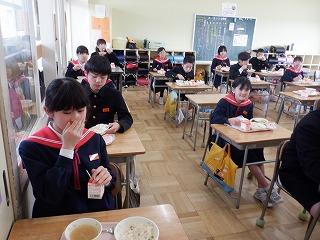 6年生は、このメンバーでの最後の給食を名残惜しそうにしながらも、一つ一つおいしそうに味わって食べていました。