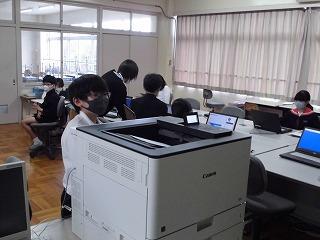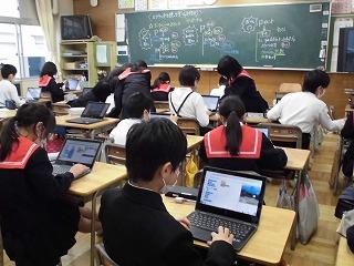 算数の時間に正多角形を学習している5年生。3月14日(火)の算数の時間は、担当の先生とPCサポーターと一緒に、プログラミングで正多角形を描く学習をしていました。描きたい図形にするには、どんな命令を出せばよいか、曲がる角度や向きを考えながら取り組んでいました。