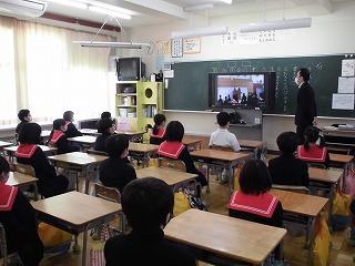 3月24日(金)3限目に、3~5年生が体育館に集合し、1・2年生はリモートで修了式を行いました。会場は別でしたが、全校児童で元気に校歌を歌い、式が始まりました。