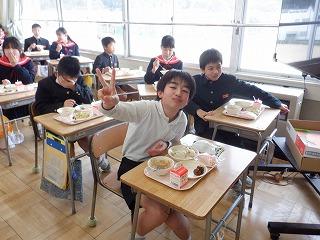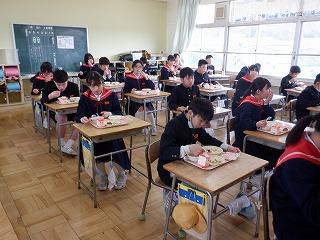 6年生は、このメンバーでの最後の給食を名残惜しそうにしながらも、一つ一つおいしそうに味わって食べていました。