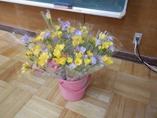 お花ボランティアの中西さんが、春の訪れを感じる花を生けてくださいました。修了式を迎える子ども達へのお祝いのお気持ちを感じます。今年も1年間、心を癒すお花を生け続けていただき、ありがとうございました。