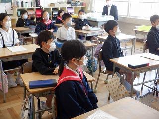 3月2日(木)5限目、2年2組の子ども達が、3年2組の授業を参観しました。子ども達は、3年2組の参観ポイント「ベル学・声の大きさ・伝わっているか確認」の3つのめあてを守って真剣に学ぶお兄さんお姉さんの姿に、刺激を受けているようでした。