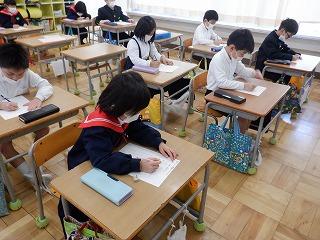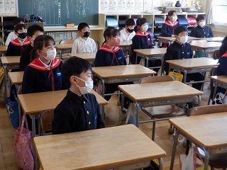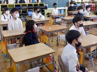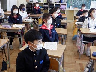 コロナ感染防止のため、当日は5・6年生のみの参加となるので、1~4年生にとっては、予行練習が本番でした。どの学年の子ども達も、背筋を伸ばし、6年生が卒業証書を授与する姿をしっかりと見ていました。教室でリモートでの参加となりましたが、礼儀を持って臨んでいる姿がとても素敵でした。