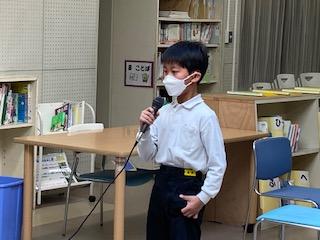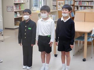 最後に、読書賞の表彰がありました。5年代表児童が学校長から賞状を受け取り、全校児童に向けて読書のよさを伝えました。