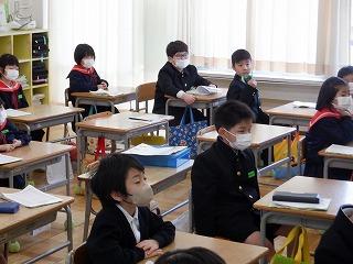 教室に戻ってからの振り返りでは、「授業の準備が全員できていて、ぼくたちも見習いたいです。」「みんなに聞こえる声で発表していました。」「全員、反応の声が揃っていて良かったです。」と、次の学年に繋がる目標の姿を発表していました。