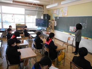 3月1日(水)図書ボランティアの皆様が、今年度最後の読み聞かせをしてくださいました。今年1年感染防止対策にご協力をいただきながら、最後まで継続してくださったことに感謝しながら、全校児童でお話を聞きました。春の日差しとボランティアさんの優しい語りに、温かい空気が教室を包んでいました。