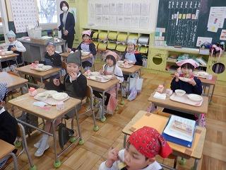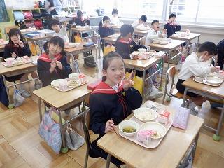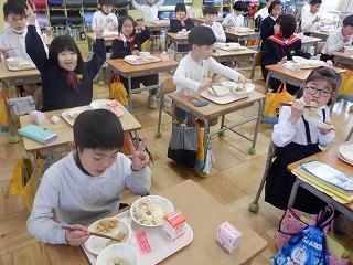 6年生は、このメンバーでの最後の給食を名残惜しそうにしながらも、一つ一つおいしそうに味わって食べていました。