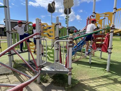 児童たちも来てくれて、運動場の草むしりや自分の教室、体育館をきれいにしてくれました!
