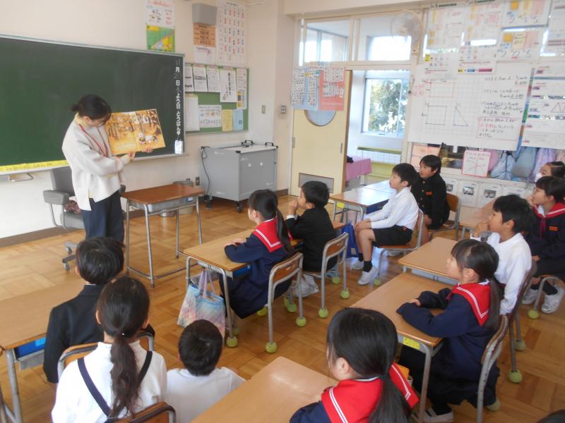 今日の朝は、今年最後の図書ボランティアの方による読み聞かせでした。