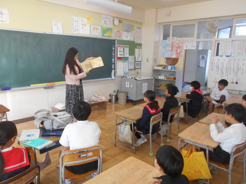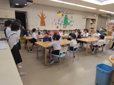 クイズを出し合っている場では,ALTの先生や違うクラスの友達に自分から声をかけ,交流している姿はとても素敵でした。子供たちが楽しそうに笑顔で活動している姿も心温まる瞬間でした。