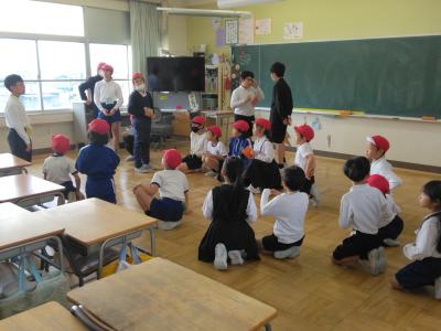 勉強のこと、学校内にある部屋や場所のこと、学校のきまりのこと…と、年長さんに教えてあげたいことを準備のときからたくさん考えていた1年生の子供たち。