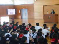 落語の源流として「説法」が由来となっていることや落語を楽しむためには「想像力」が重要であることなど,落語の基本を説明していただいた後,2席実演していただきました。1席目の「ももたろう」2席目の「動物園」どちらの演目もとてもおもしろく,子供たちは声を上げて笑いながら楽しむことができました。最後の質問タイムでは,子供たちの疑問にまっすぐに答えていただき,落語への理解をさらに深めることができました。