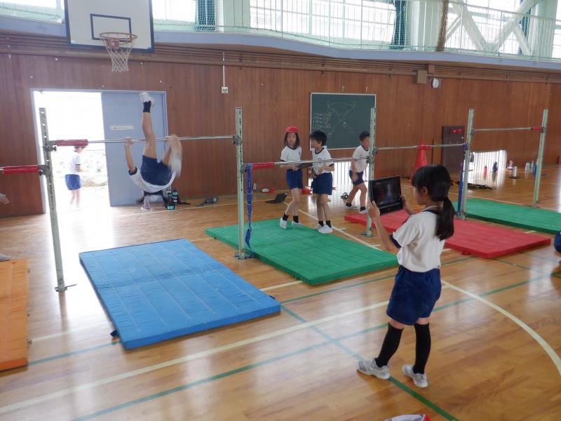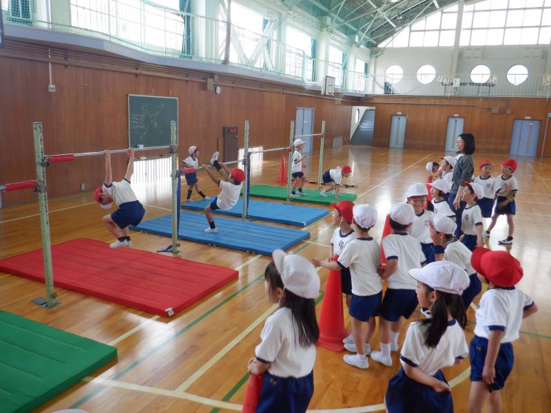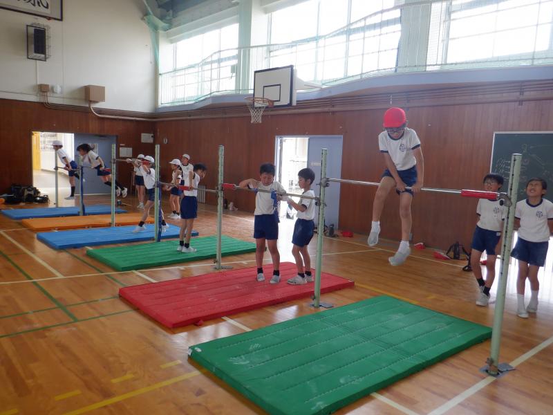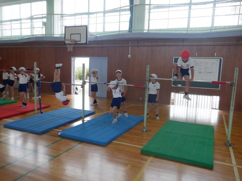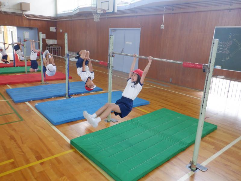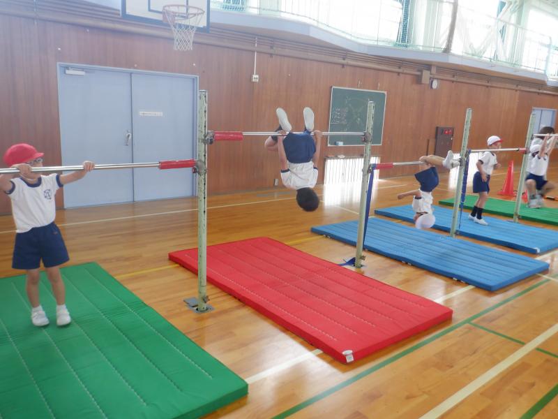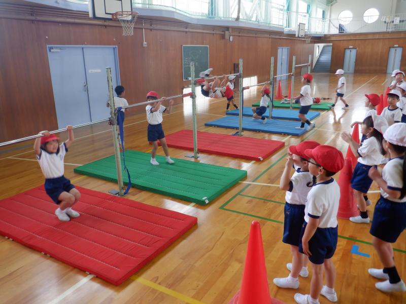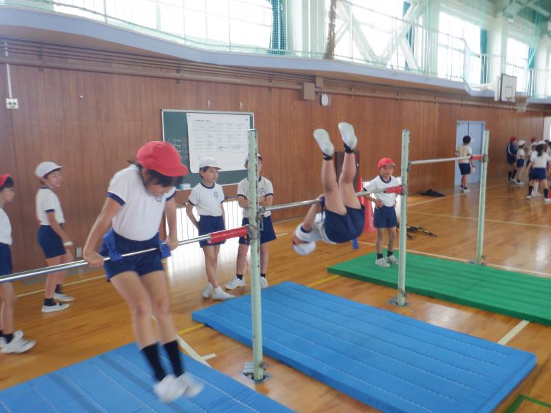 1年生は,体育の授業で鉄棒を頑張っていました。