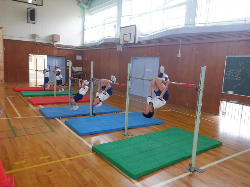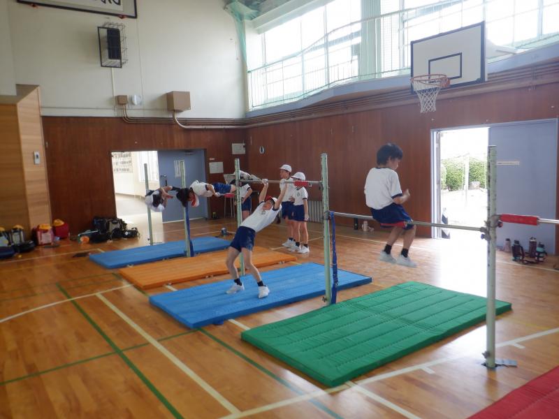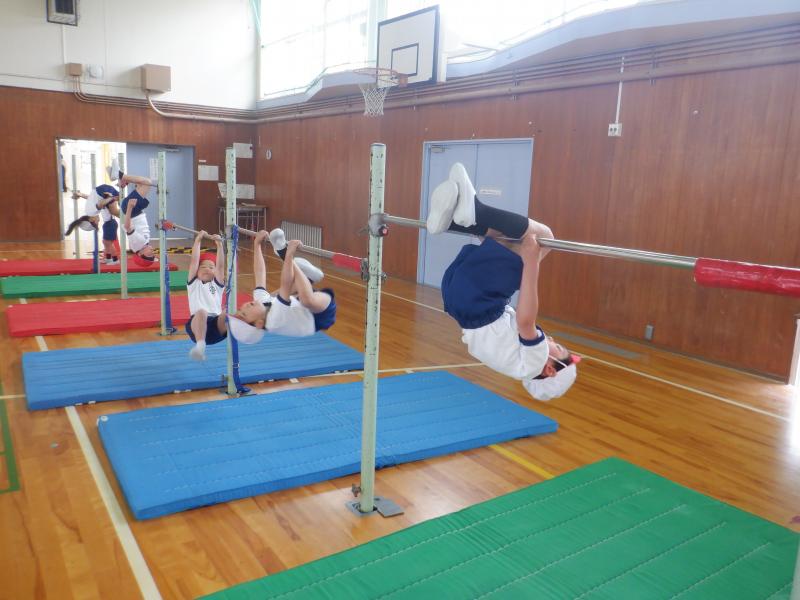 5月の下旬に,町の器械運動交歓会が本校で行われます。子供たちは交歓会に向けて,鉄棒とマット,跳び箱の練習を一生懸命に頑張っています。