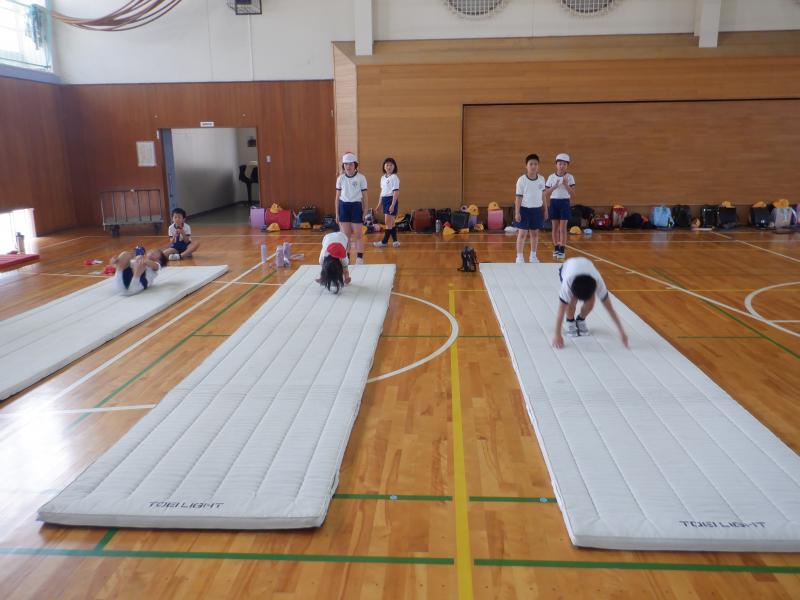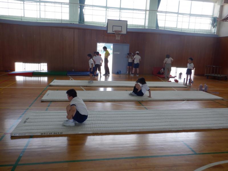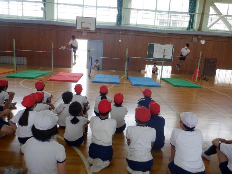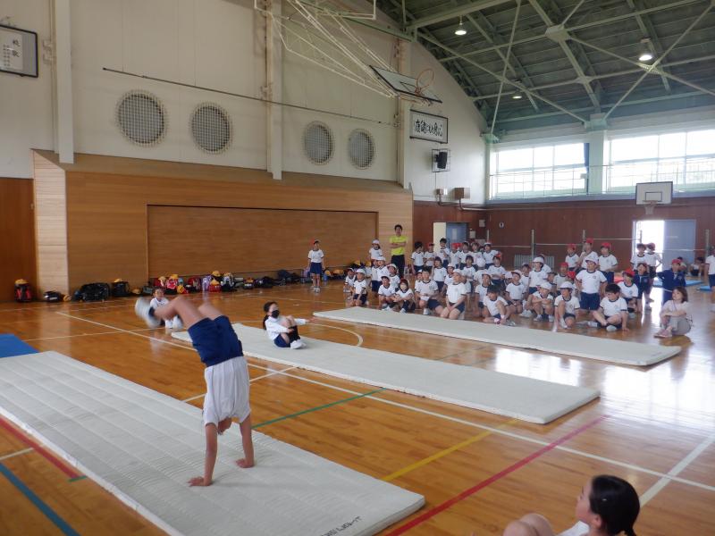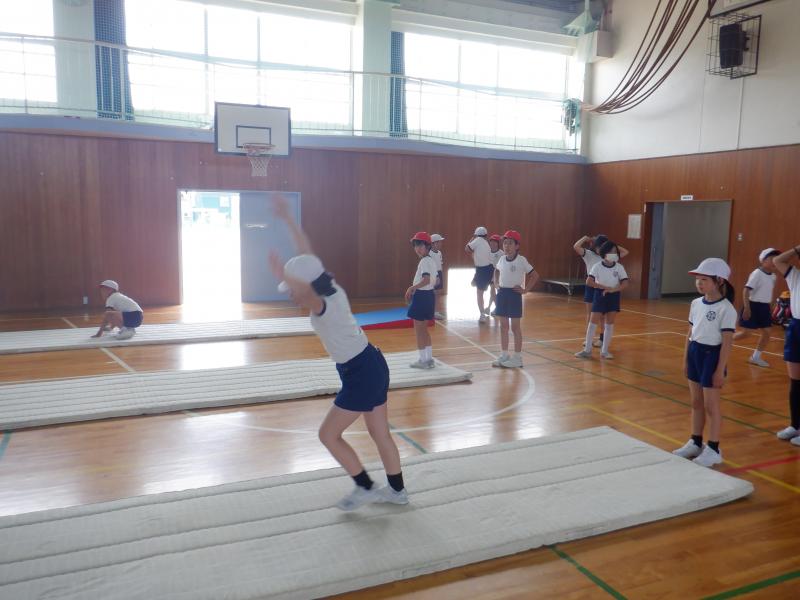 練習の後半には,5年生がお手本を見せてくれました。子供たちは,5年生の技を見て,「すごい!自分もこんな技をしてみたい!」という気持ちになったはずです。本番まで自分の技を極め,上達してほしいと思います。