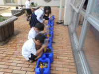 水の量と空気の量の割合や、ロケットの角度など、各グループでどうしたらより遠くへ飛ぶか考えて、チャレンジしていました!