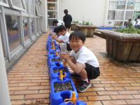 お花は,人の気持ちが分かるため,温かい声かけ(「きれいだね」,「かわいい色だね」)をすると,長く綺麗に育つと学びました。反対に,無視をしたり,悪い言葉をかけると,茎が曲がったり早く枯れたりすると聞き,子供たちは大変驚いていました。