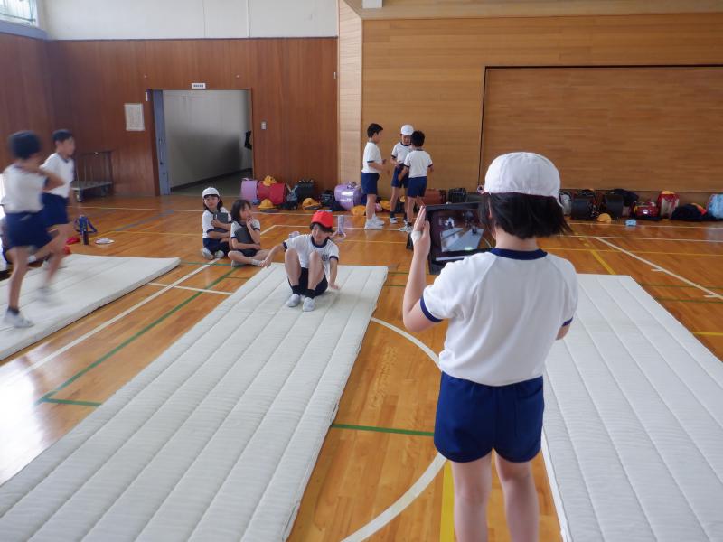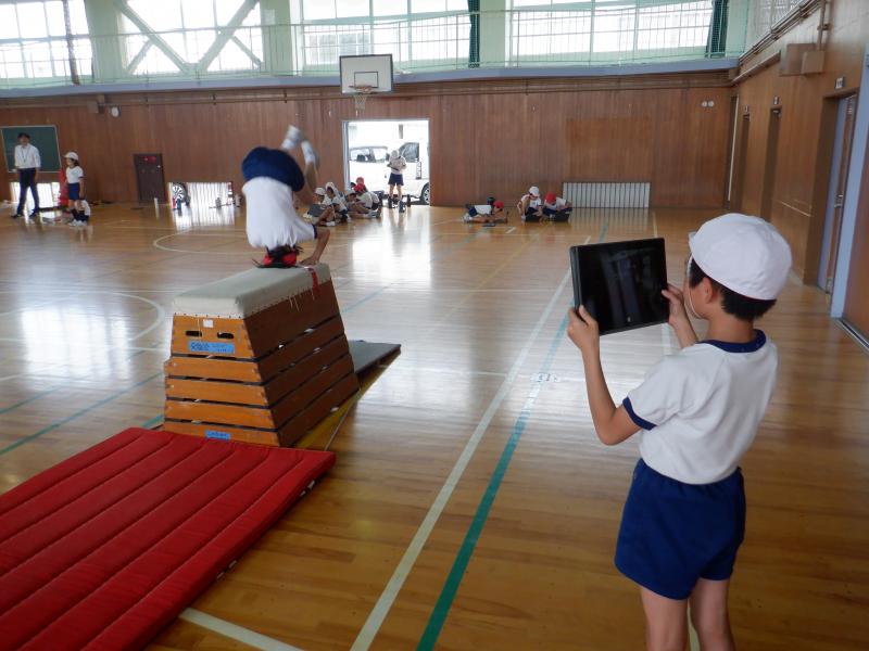 また,自分の技を美しくするために友達と自分の演技の動画をとり,お互いにアドバイスをしています。