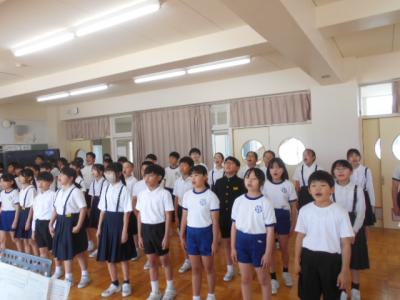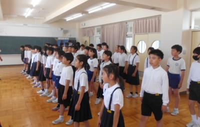 朝のつどいでは、ラジオ体操をしたり他の小学校の小学生と交流したりしました。
