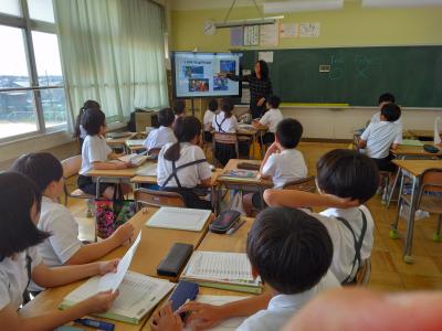 5・6年生は、自己紹介を聞くだけでなく、学習した英語を使ってダニー先生に質問もすることができました。