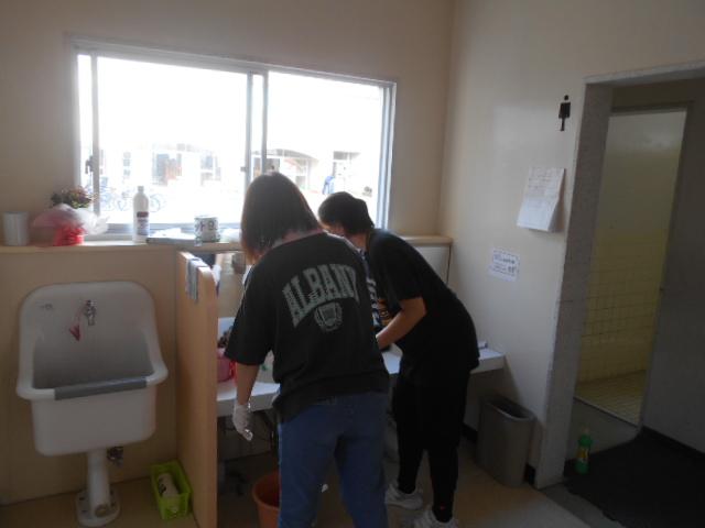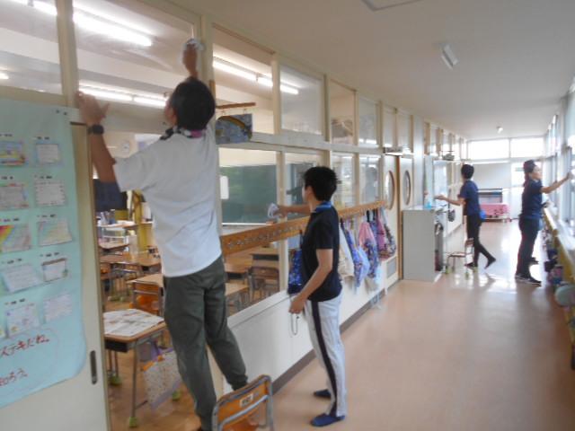 大勢の保護者の方々が学校の掃除をしてくださいました。