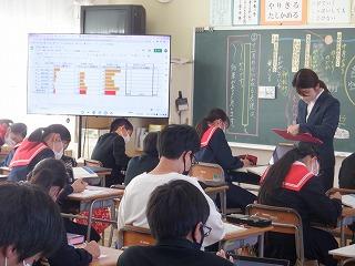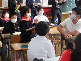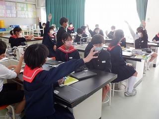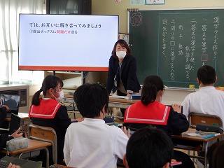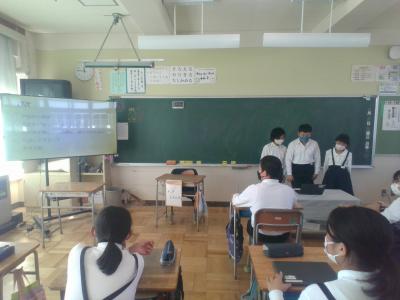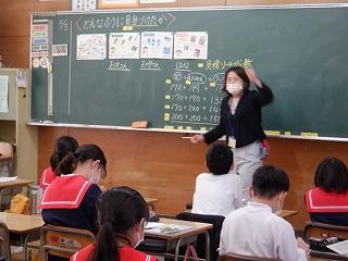 2組の様子です。2人の先生の話をしっかりと聞き、自分の考えを進んで発表しながら学び合っていました。