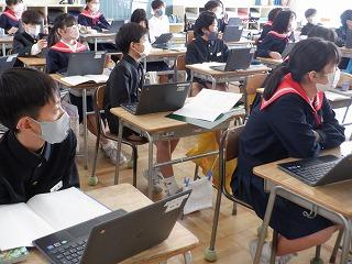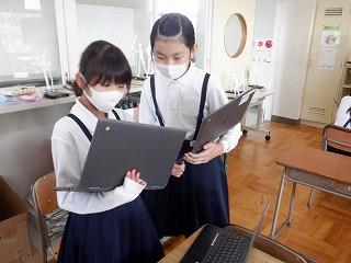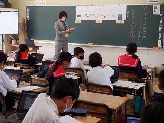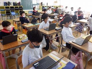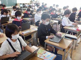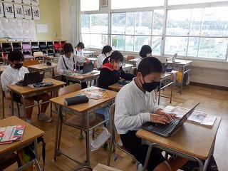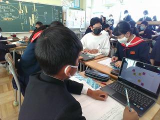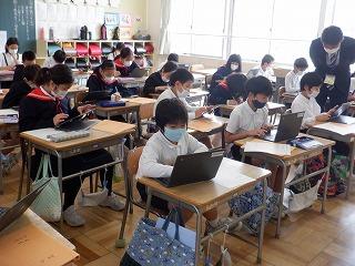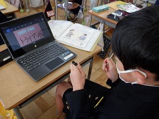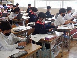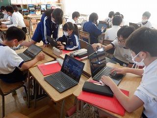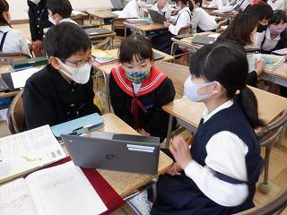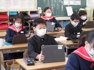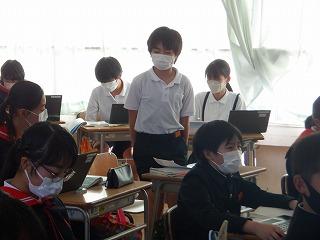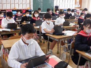 ICTを効果的に活用する場面では、さすが高学年らしく巧みにクロームブックを操作しながら、自分の考えを書きこんでいました。