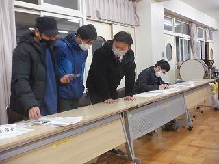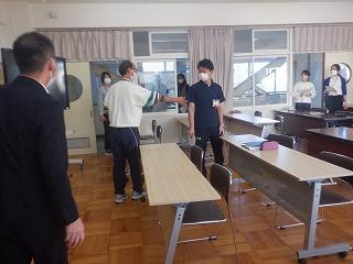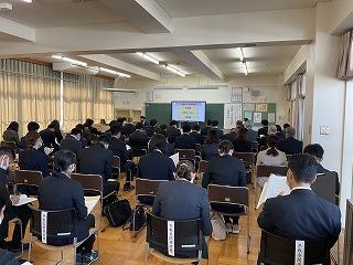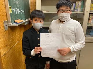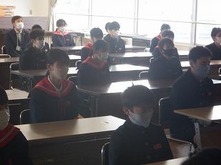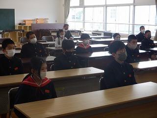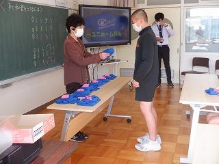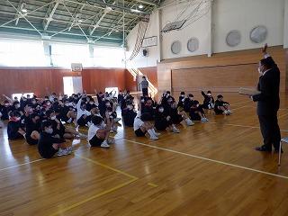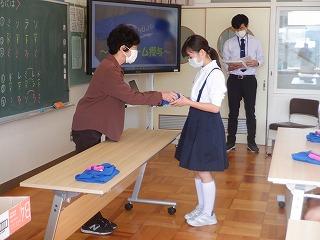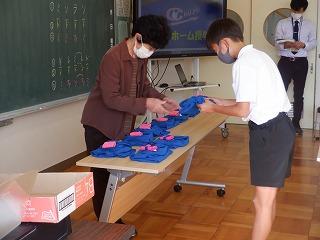 そして、今日2日(水)昼休みに、代表選手が集まり、明日の大会に向けての前日ミーティングを行いました。担当の先生から大会諸注意を聞いた後、学校長から選手一人一人にユニホームを手渡しました。