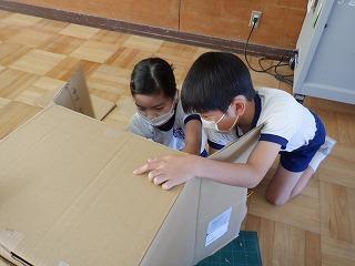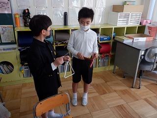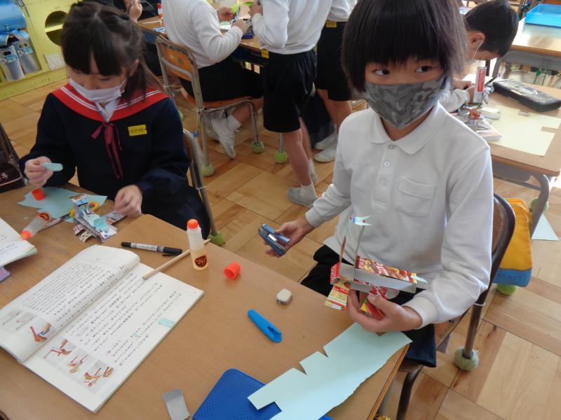 先週、1年1組の子ども達が、風に揺れる飾りを作っていました。風に揺れると楽しかったりきれいだったりする飾りを考え、はさみやセロハンテープなどを上手に使いながら、イメージ通りに作ろうと頑張っていました。