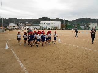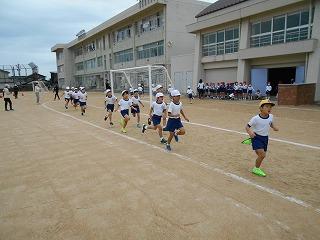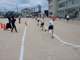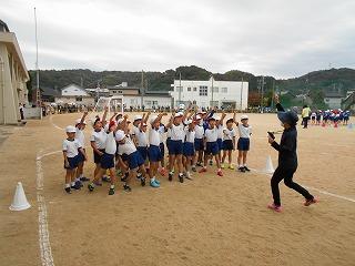 時折小雨がぱらつきましたが、たくさんの保護者の皆様の声援のおかげで、全員素早くゴールすることができました。温かい応援をありがとうございました。