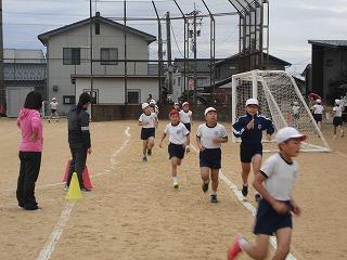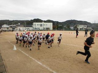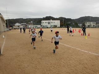 11月1日(火)マラソン記録会に初めて挑戦した1年生。まずは、男子からスタート。女の子たちが応援する中、全力を出して走っていました。