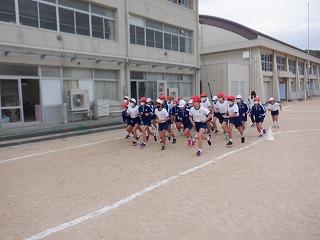 11月1日(火)去年よりも2倍の距離の周回コース2往復に挑戦した3年生。まずは、男子チームがスタートして、見事全員走りぬきました。
