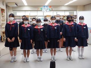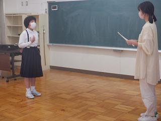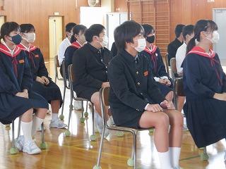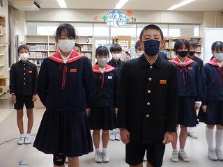 11月の中条っ子目標については、環境委員会の委員長と副委員長が「無言清掃」の取組の目的と方法を話しました。自分たちでよりよい学校にしようという気持ちが伝わる発信でした。