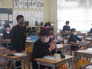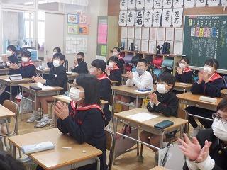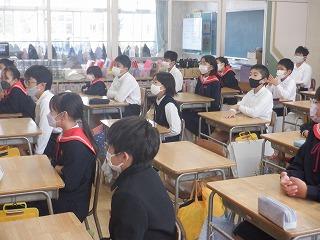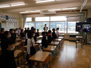 11月1日(火)5限目に、リモートでいしかわっ子駅伝壮行会を行いました。担当の先生からの選手紹介の後、男女各チームのキャプテンから全校児童に向けて挨拶をしました。全校児童からは激励の拍手が送られ、選手たちは気もちを引き締めていました。