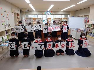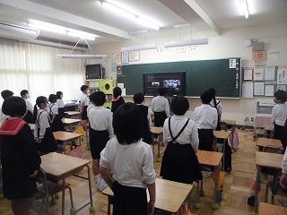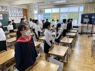 11月1日(火)リモートで全校集会を行いました。まずは、6年生児童の伴奏で校歌を歌いました。