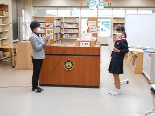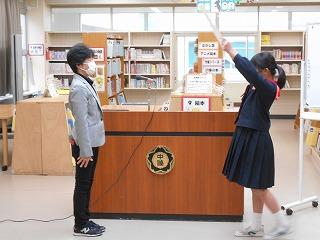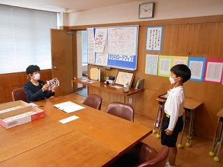 10月24日(月)あるグループの子ども達が、全校児童に伝えるプレゼンの発信許可を得るために、校長室にやってきました。3人は、学校長から発信OKをもらおうと、プレゼンの目的と内容をしっかりと説明していました。