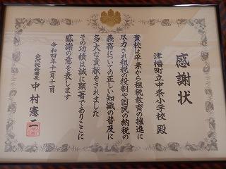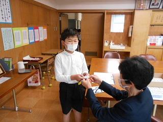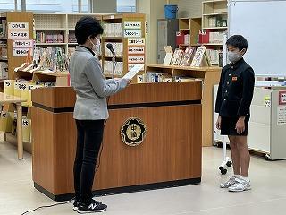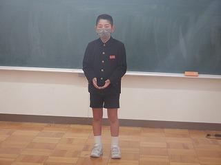 最後に、郡市書写・図画作品展や図書館を使った調べる学習コンクールの表彰を行いました。代表児童以外の入賞児童も各クラスで起立し、代表児童に合わせて学校長から表彰を受けました。全校児童で拍手を送り、受賞児童を称えました。