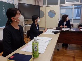 研究授業の後は、高学年ブロックの先生方で授業整理会を行いました。指導主事からは、粘り強く解決に向かい子ども達の姿がよかったと評価をいただきました。