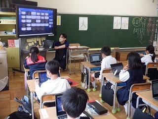 10月28日(金)4年2組で、県指定ICT活用指導力強化事業公開研の公開授業を行いました。県内のたくさんの先生方に囲まれての授業でしたが、子ども達はいつも通りにしっかりと自分の考えを発表し、聞き合いながら学び合っていました。