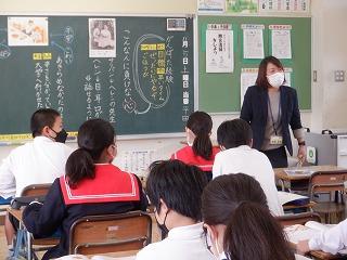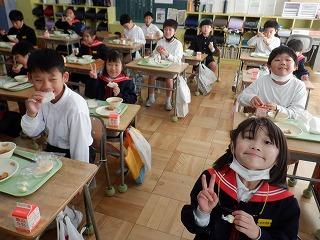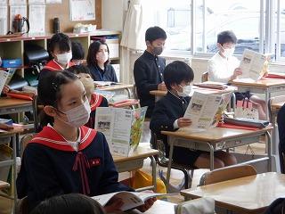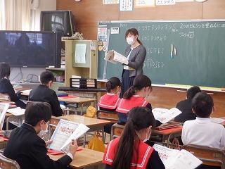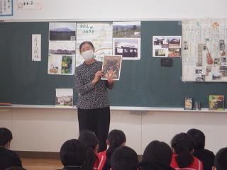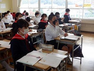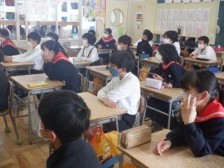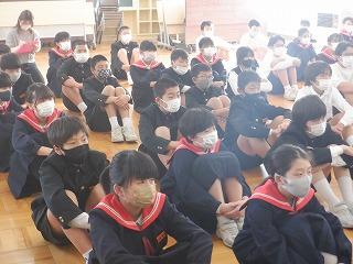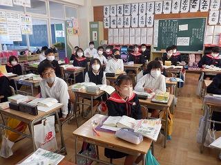 11月25日(金)3年生が、町の栄養教諭の先生を講師にお迎えして、噛むことをよさについて学びました。子ども達は、よく噛むことで唾液が分泌され、消化を助けたり虫歯予防になったり頭がよくなったりすることを知り、自分の生活に生かしたいと考えていました。
