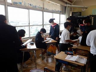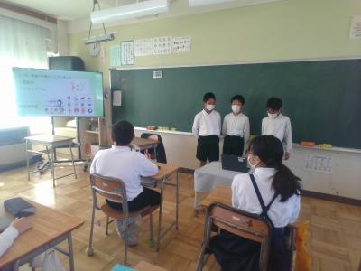前回、学校長から全校へのプレゼン発信のOKをもらおうと校長室を来室したグループは、改良版を持参して再度来室し、一生懸命に説明していました。学習を通して、自分達でできることを考え実行する力を高めているのを感じました。