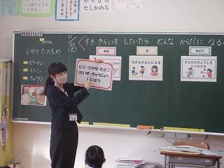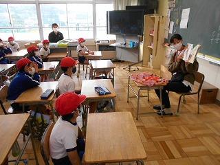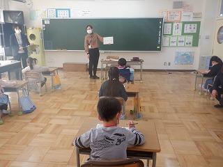11月22日(火)町の栄養教諭を講師にお迎えして、1年生が食育の学習をしました。1組さんも2組さんも、食べ物の持つ3つの働きについて知り、健康な体をつくるには好き嫌いせずに食べることが大事だと気付いていました。